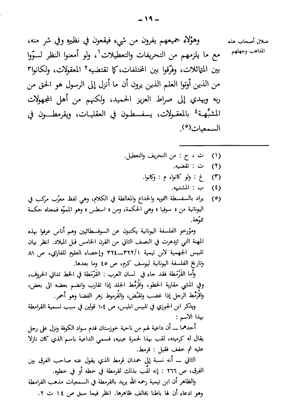 فهم غيّروا العبارة ليوهموا من لا يفهم حقيقة قولهم أن هذا معنى آخر، وهو المعنى الذي عُلم فساده بضرورة العقل. كما فعل أولئك في قولهم: ليس بحى ولا ميت، ولا موجود ولا معدوم، ولا عالم ولا جاهل.