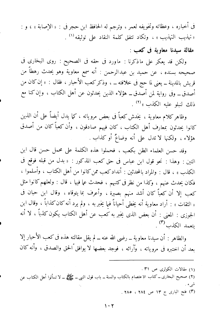 وظاهر كلام معاوية، يخدش كعبا في بعض مروياته، كما يدل أيضا على أن الذين كانوا يحدثون بمعارف أهل الكتاب، كان فيهم صادقون، وأن كعبا كان من أصدق هؤلاء، ولكنها لا تدل على أنه وضاع أو كذاب.