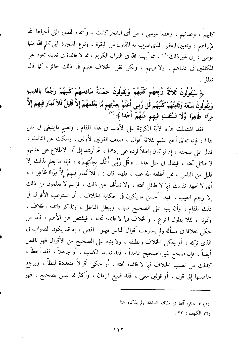{سَيَقُولُونَ ثَلاثَةٌ رَابِعُهُمْ كَلْبُهُمْ وَيَقُولُونَ خَمْسَةٌ سَادِسُهُمْ كَلْبُهُمْ رَجْمًا بِالْغَيْبِ وَيَقُولُونَ سَبْعَةٌ وَثَامِنُهُمْ كَلْبُهُمْ قُلْ رَبِّي أَعْلَمُ بِعِدَّتِهِمْ مَا يَعْلَمُهُمْ إِلَّا قَلِيلٌ فَلا تُمَارِ فِيهِمْ إِلَّا مِرَاءً ظَاهِرًا وَلا تَسْتَفْتِ فِيهِمْ مِنْهُمْ أَحَدًا} 2.