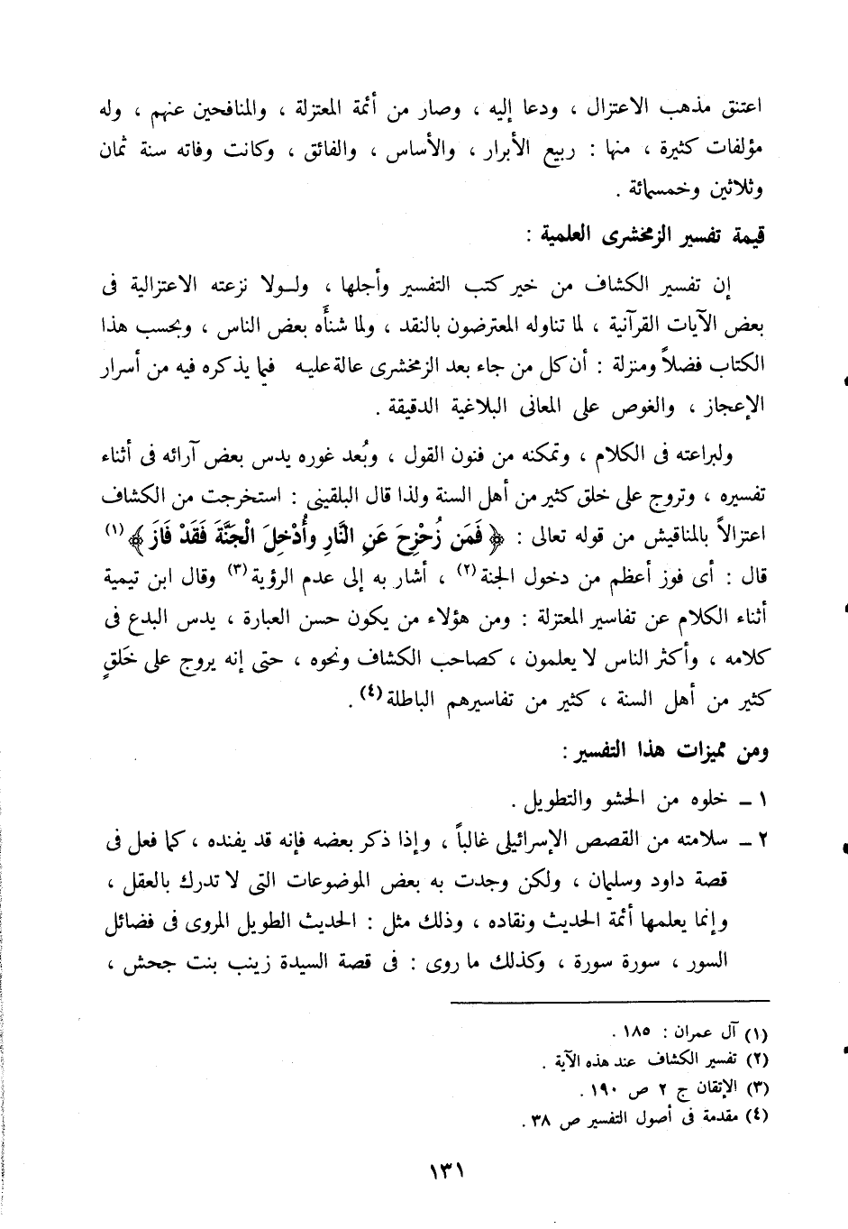 قال: أي فوز أعظم من دخول الجنة2، أشار إليه به إلى عدم الرؤية3، وقال ابن تيمية أثناء الكلام عن تفاسير المعتزلة: ومن هؤلاء من يكون حسن العبارة، يدس البدع في كلامه، وأكثر الناس لا يعلمون، كصاحب الكشاف ونحوه، حتى إنه يروج على خلق كثير من أهل السنة كثير من تفاسيرهم الباطلة4.