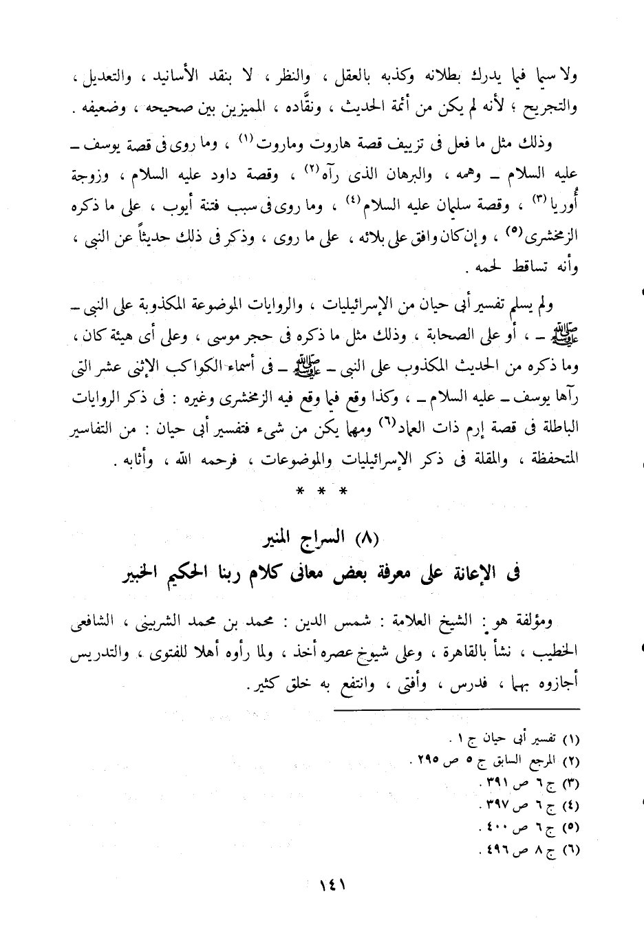 8- السراج المنير في الإعانة على معرفة بعض معاني كلام ربنا الحكيم الخبير: