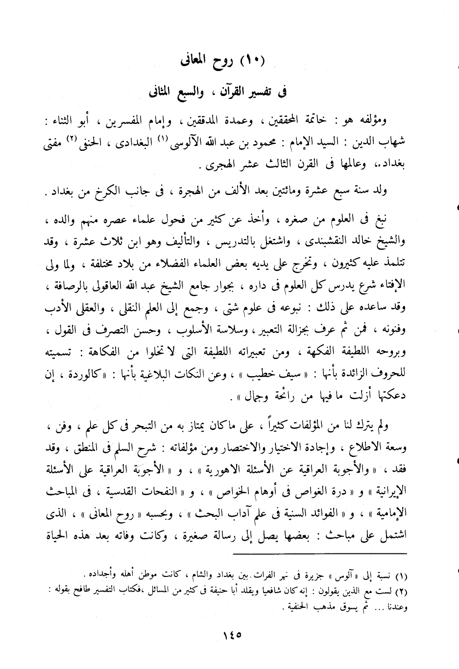 10- روح المعاني في تفسير القرآن، والسبع المثاني: