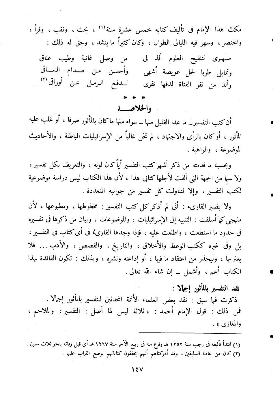 وبحسبنا ما قدمته من ذكر أشهر كتب التفسير أيا كان لونه، والتعريف بكل تفسير، ولا سيما من الجهة التي ألفت لأجلها كتابي هذا، لأن هذا الكتاب ليس دراسة موضوعية لكتب التفسير، وإلا لتناولت كل تفسير من جوانبه المتعددة.