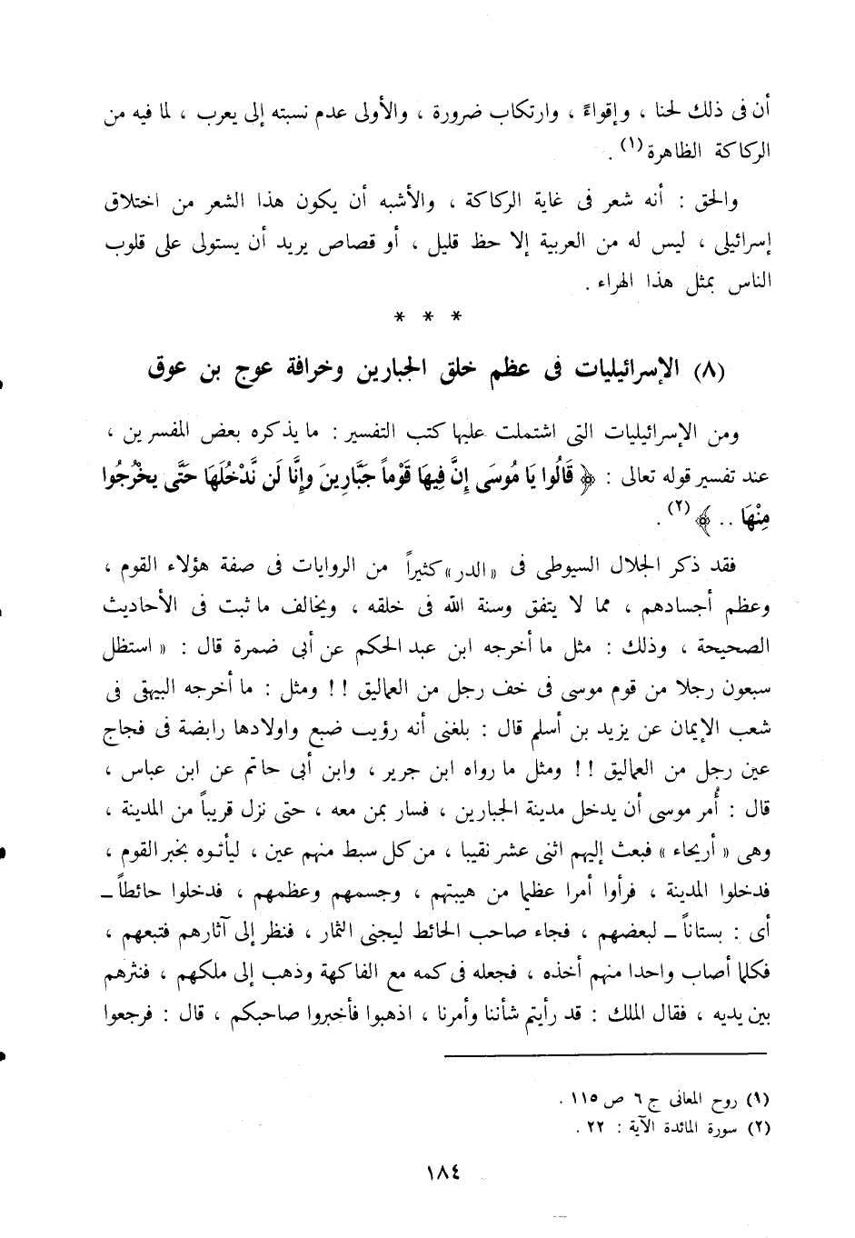 8- الإسرائيليات في عظم خلق الجبارين وخرافة عوج بن عوق: