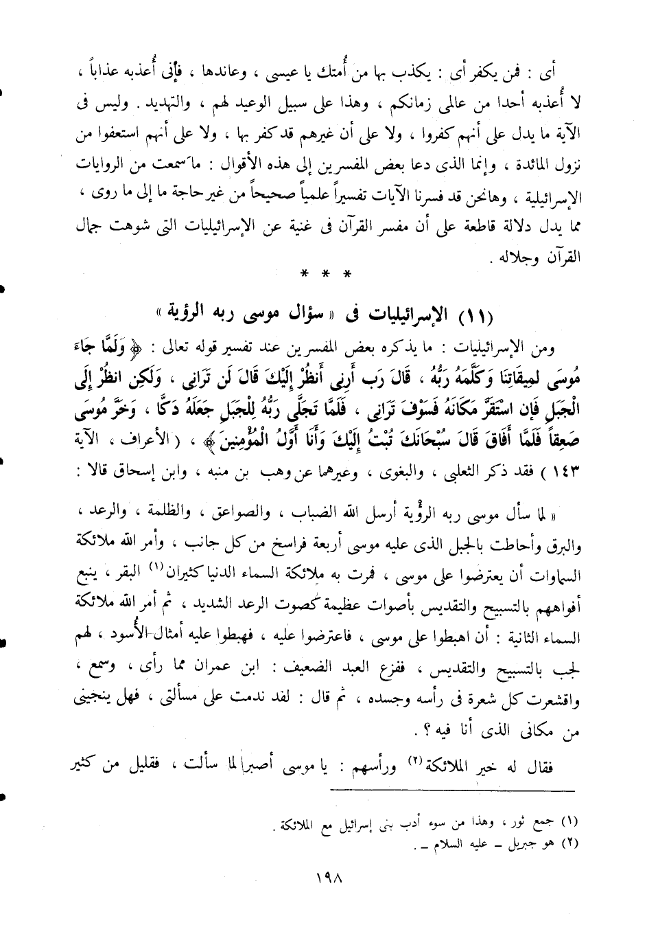 11- الإسرائيليات في سؤال موسى ربَّه الرؤيةَ: