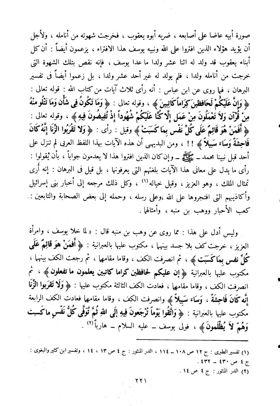 1 تفسير الطبري: ج 12 ص 108- 114، الدر المنثور: ج4 ص 13، 14، وتفسير ابن كثير والبغوي: ج4 ص 430-432.