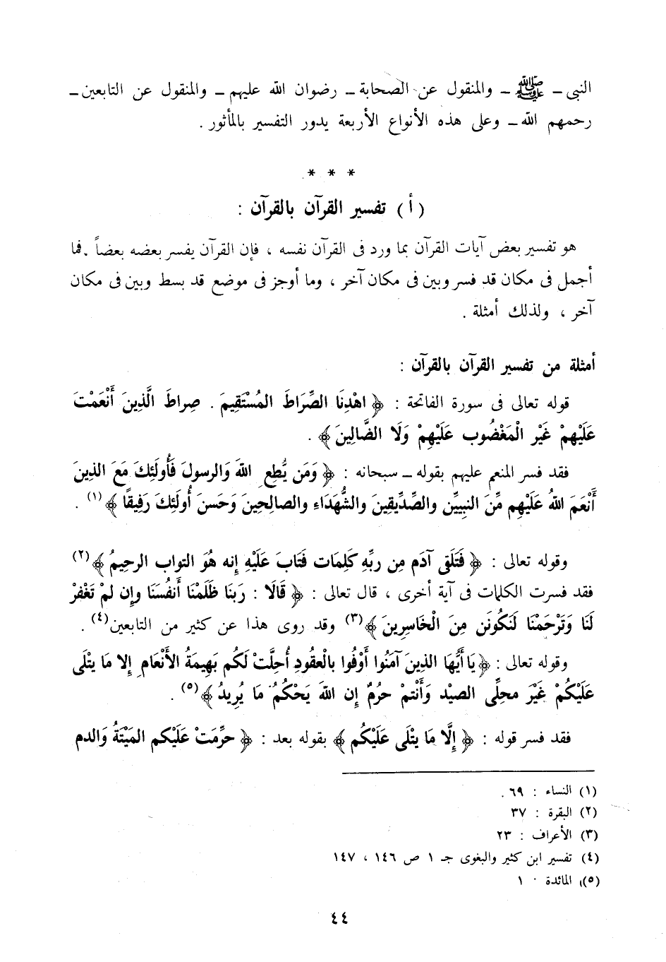 النبي صلى الله عليه وسلم والمنقول عن الصحابة رضوان الله عليهم والمنقول عن التابعين رحمهم الله، وعلى هذه الأنواع الأربعة يدور التفسير بالمأثور.