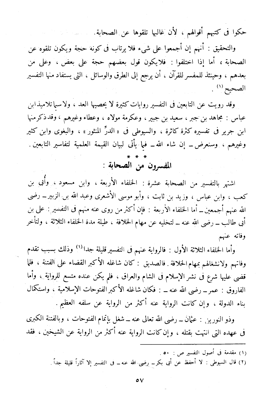 1 قال السيوطي: لا أحفظ عن أبي بكر رضي الله عنه في التفسير إلا آثارا قليلة جدًّا.