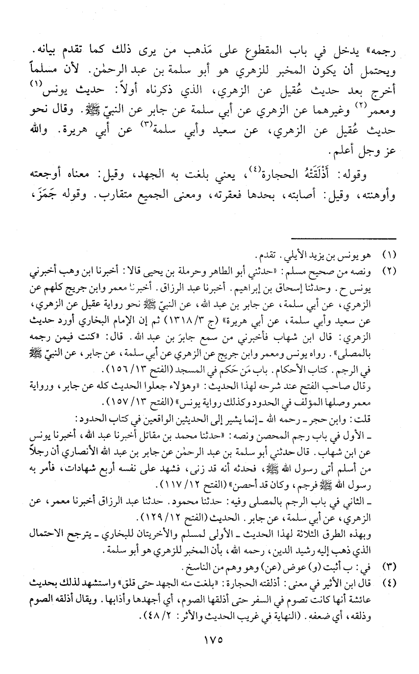 رجمه يدخل في باب المقطوع على مذهب من يرى ذلك كما تقدم بيانه ويحتمل أن يكون المخبر للزهري هو أبو سلمة بن عبد الرحمن لأن مسلما أخرج بعد حديث عقيل عن الزهري الذي ذكرناه أولا حديث يونس ومعمر وغيرهما عن الزهري عن أبي سلمة عن جابر عن النبي صلى الله عليه وسلم وقال نحو حديث عقيل عن الزهري عن سعيد وأبي سلمة عن أبي هريرة والله عز وجل أعلم وقوله أذلقته الحجارة يعني بلغت به الجهد وقيل معناه أوجعته وأوهنته وقيل أصابته بحدها فعقرته ومعنى الجميع متقارب وقوله جمز