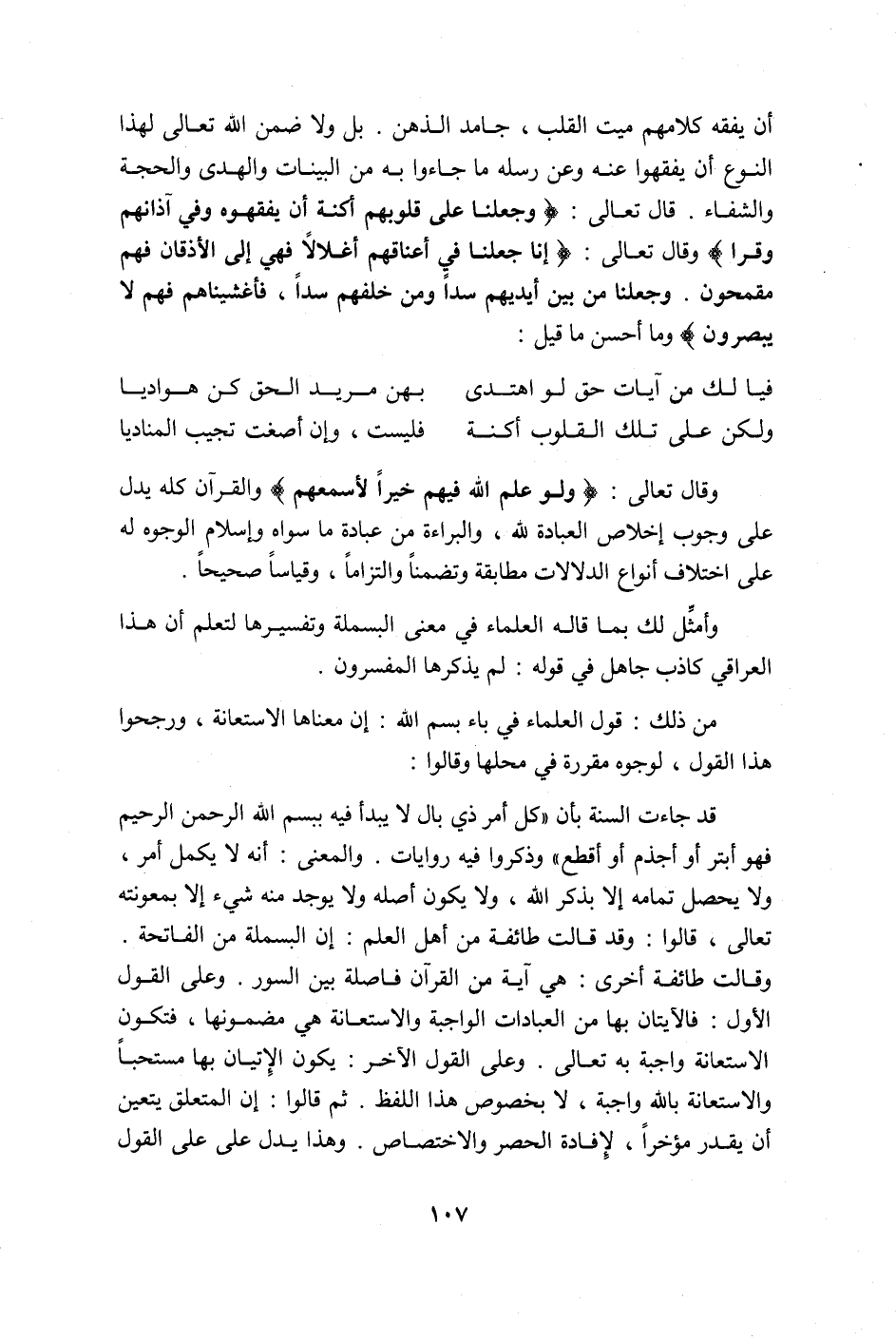 وأمثّل لك بما قاله العلماء في معنى البسملة وتفسيرها لتعلم أن هذا العراقي كاذب جاهل في قوله: لم يذكرها المفسرون.