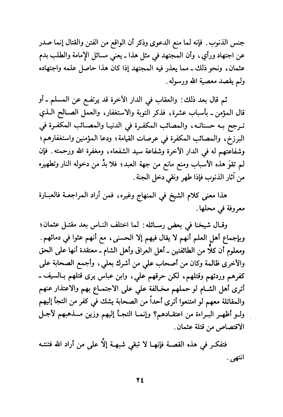 وقال شيخنا في بعض رسائله: لما اختلف الناس بعد مقتل عثمان؛ وبإجماع أهل العلم أنهم لا يقال فيهم إلا الحسنى، مع أنهم عثوا في دمائهم.