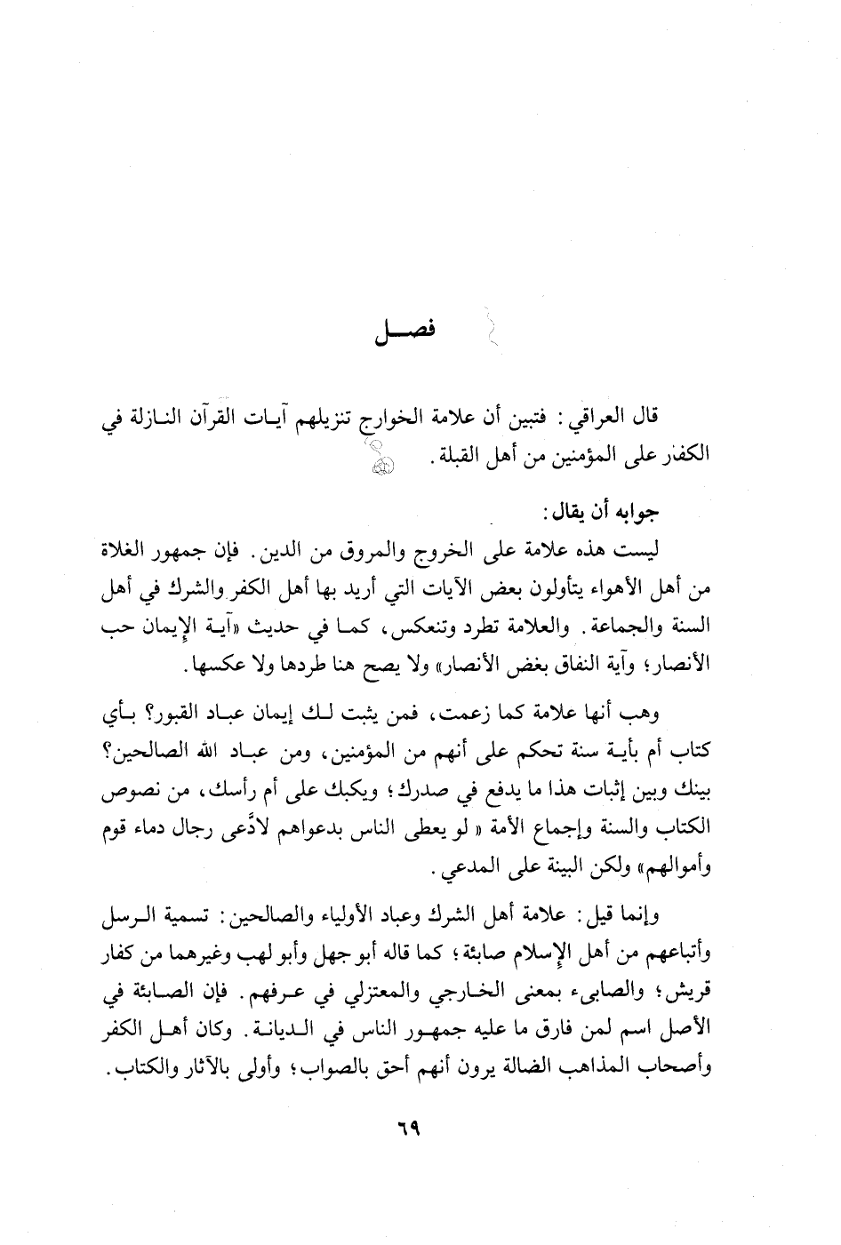 وإنما قيل: علامة أهل الشرك وعباد الأولياء والصالحين: تسمية الرسل وأتباعهم من أهل الإسلام صابئة، كما قاله أبو جهل وأبو لهب وغيرهما من كفار قريش؛ والصابئ بمعنى الخارجي والمعتزلي في عرفهم، فإن الصابئة في الأصل اسم لمن فارق ما عليه جمهور الناس في الديانة، وكان أهل الكفر وأصحاب المذاهب الضالة يرون أنهم أحق بالصواب، وأولى بالآثار والكتاب.
