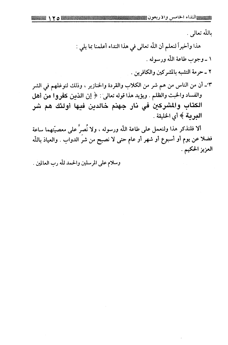 ألا فلنذكر هذا ولنعمل على طاعة الله ورسوله، ولا نصر على معصيتهما ساعة فضلا عن يوم أو أسبوع أو شهر أو عام لا نصبح من شر الدواب. ولعياذ بالله العزيز الحكيم.