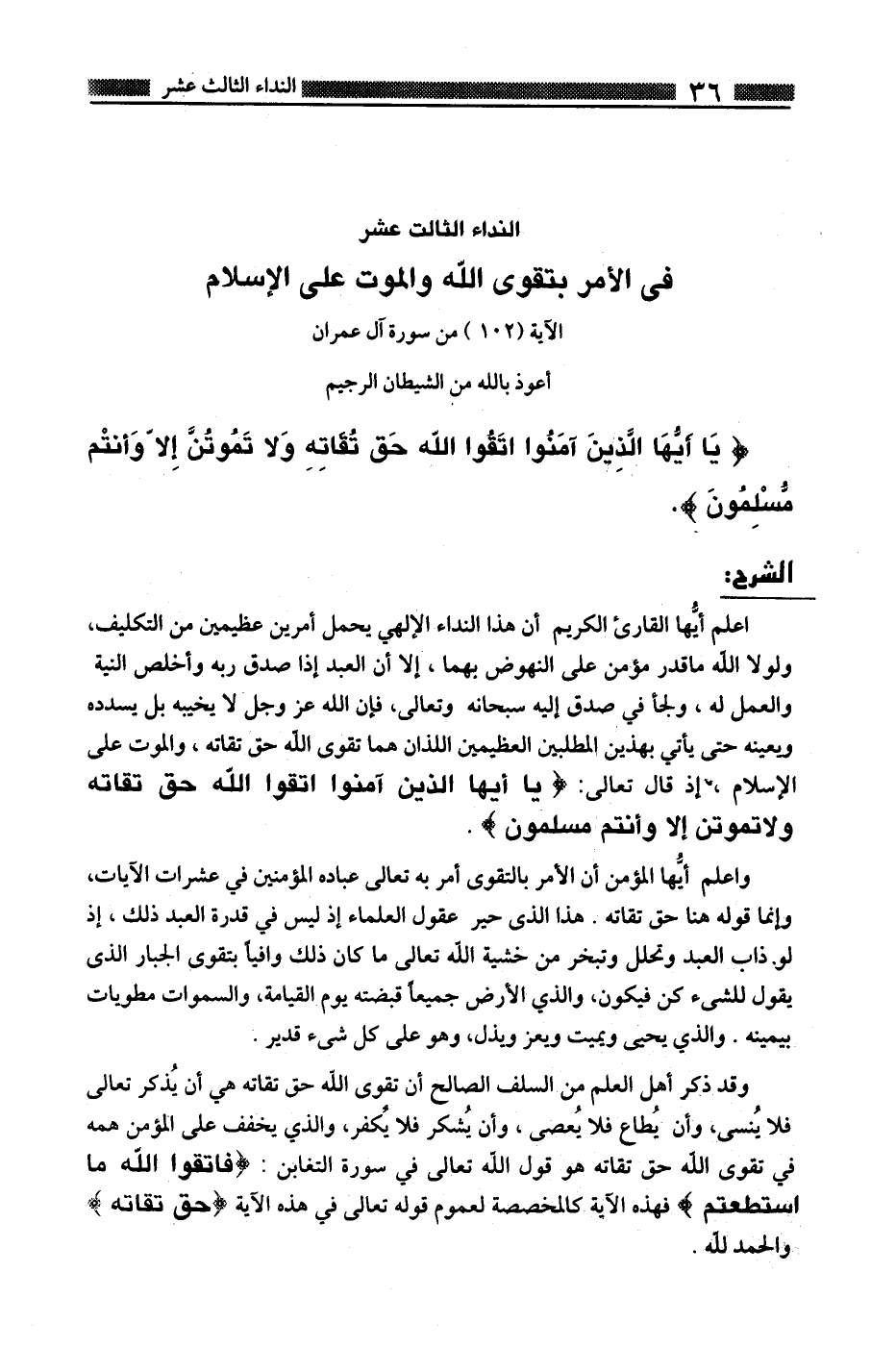 النداء الثالث عشر: في الأمر بتقوى الله والموت على الإسلام