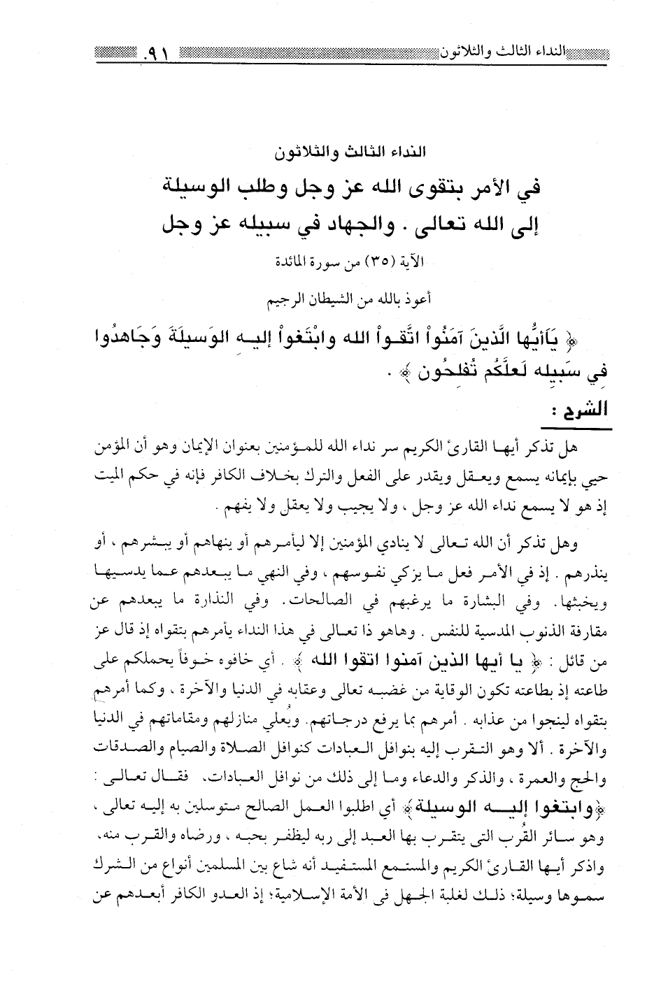 النداء الثالث والثلاثون: في الأمر بتقوى الله عز وجل وطلب الوسيلة إلى الله تعالى. والجهاد في سبيله عز وجل