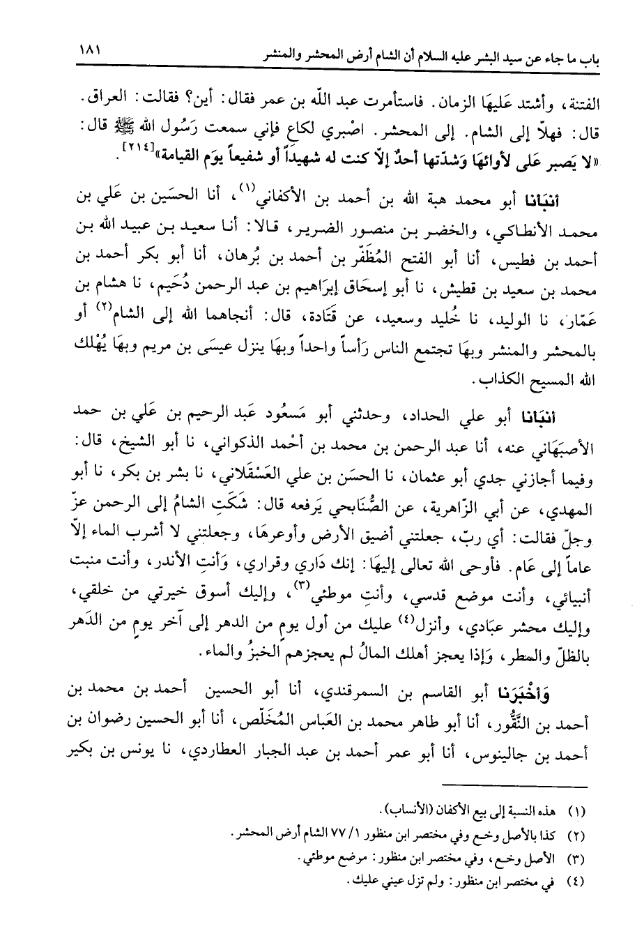 (2) كذا بالاصل وخع وفي مختصر ابن منظور 1 / 77 الشام أرض المحشر