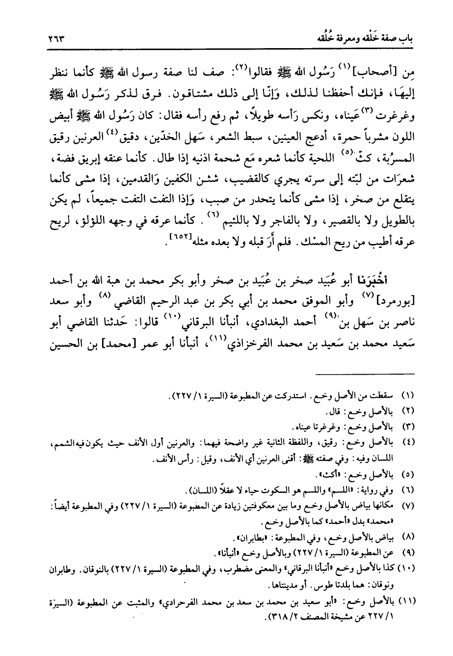 (10) كذا بالاصل وخع " أنبأنا البرقاني " والمعنى مضطرب وفي المطبوعة (السيرة 1 / 227) بالنوقان