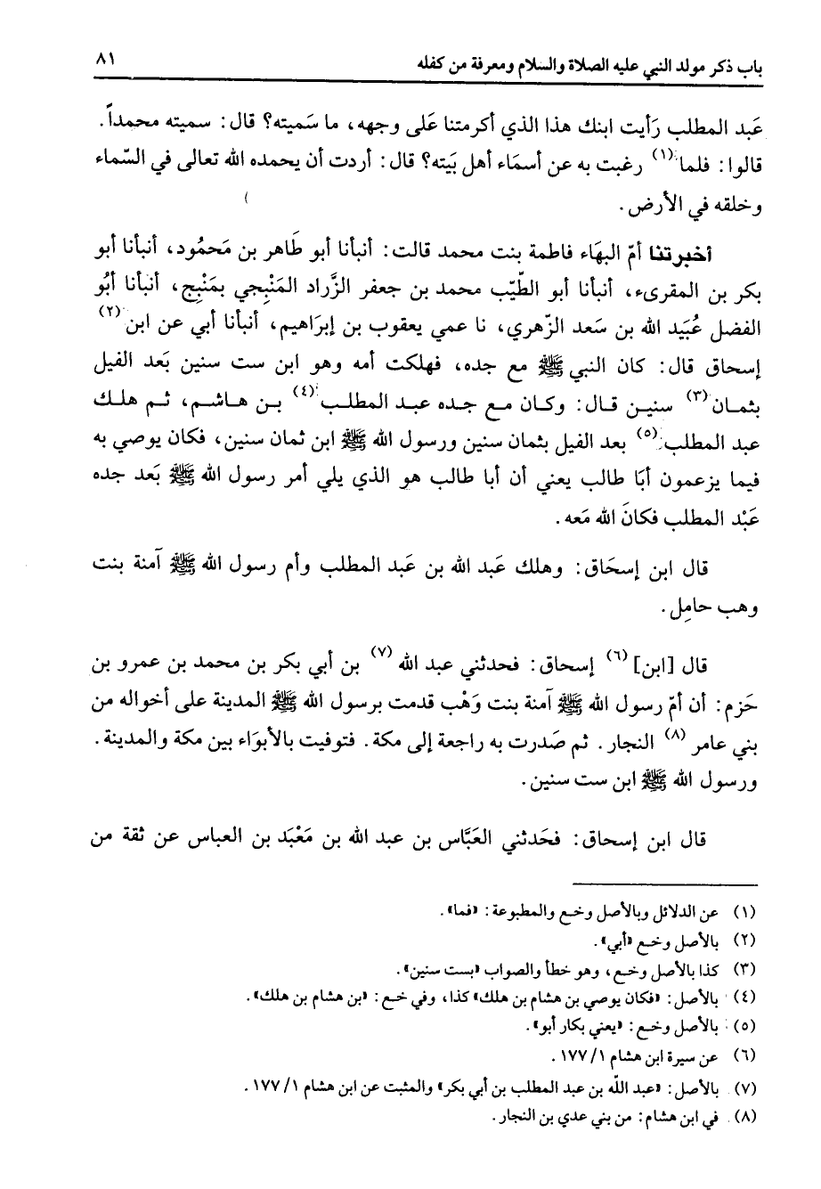 (7) بالاصل: " عبد الله بن عبد المطلب بن أبي بكر " والمثبت عن ابن هشام 1 / 177
