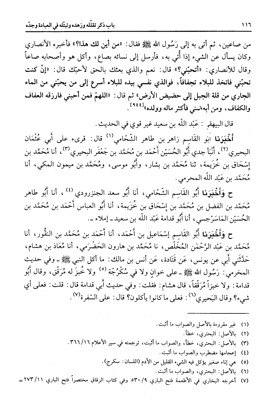 (7) اخرجه البخاري في الاطعمة فتح الباري 9 / 530 وفي كتبا الرقاق مختصرا فتح الباري 11 / 273