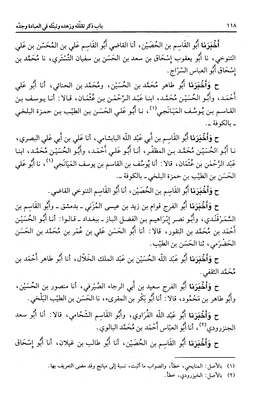أخبرنا أبو القاسم بن الحصين أنا القاضي أبو القاسم علي بن المحسن بن علي التنوخي نا أبو يعقوب إسحاق بن سعد بن الحسن بن سفيان التستري نا محمد بن إسحاق وأبو العباس السراج ح وأخبرنا أبو طاهر محمد بن الحسين ومحمد بن الحنائي أنا أبو علي أحمد وأبو الحسين محمد ابنا عبد الرحمن بن عثمان قالا أنا يوسف بن القاسم بن يوسف الميانجي (1) نا أبو علي الحسن بن الطيب بن حمزة البلخي بالكوفة ح واخبرنا أبو القاسم بن أبي عبد الله البابشامي أنا علي بن أبي علي البصري نا أبو الحسين محمد بن المظفر أنا أبو علي أحمد وأبو الحسين محمد ابنا عبد الرحمن بن عثمان قالا أنا يوسف بن القاسم بن يوسف الميانجي نا أبو علي الحسن بن الطيب بن حمزة البلخي بالكوفة ح وأخبرنا أبو القاسم بن الحصين أنا أبو القاسم التنوخي القاضي ح وأخبرنا أبو الفرج قوام بن زيد بن عيسى المزني بدمشق وأبو القاسم بن السمرقندي وأبو نصر إبراهيم بن الفضل الباز ببغداد قالوا أنا أبو الحسين أحمد بن محمد بن النقور قالا أنا أبو الحسن علي بن عمر بن محمد بن الحسن الحضرمي ثنا الحسن بن الطيب ح وأخبرنا أبو عبد الله الحسين بن عبد الملك الخلال أنا أبو طاهر أحمد بن محمد الثقفي ح واخبرنا أبو الفرج سعيد بن أبي الرجاء الصيرفي أنا منصور بن الحسين وأبو طاهر بن محمود قالا أنا أبو بكر بن المقرئ نا الحسن بن الطيب البلخي ح وأخبرنا أبو عبد الله الفراوي وأبو القاسم الشحامي قالا أنا أبو سعد الجنزرودي أنا أبو العباس أحمد بن محمد البالوي ح وأخبرنا أبو القاسم بن الحصين أنا أبو طالب بن غيلان أنا أبو إسحاق