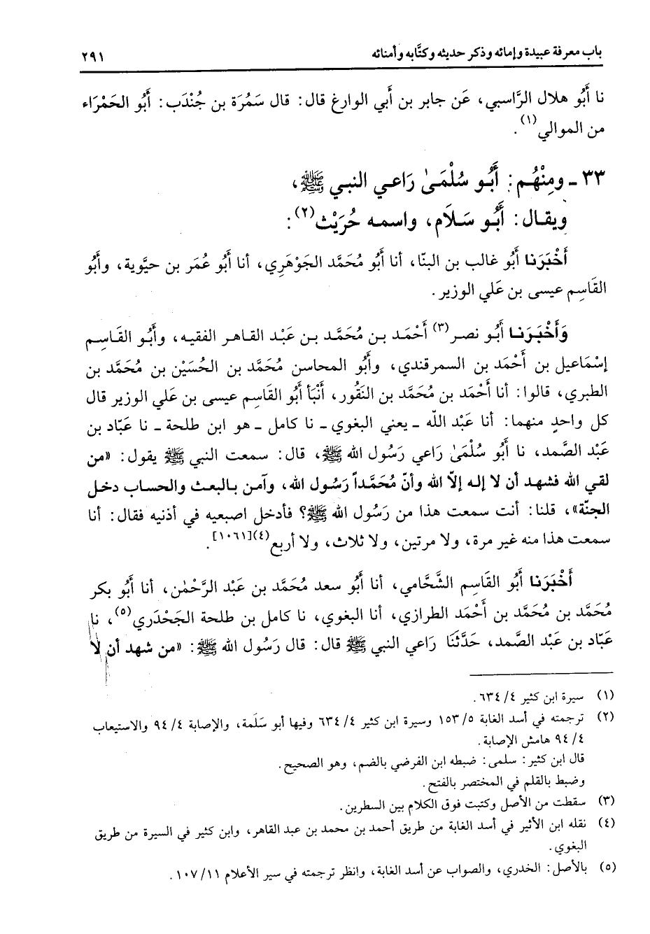 (5) بالاصل: الخدري والصواب عن أسد الغابد وانظر ترجمته في سير الاعلام 11 / 107