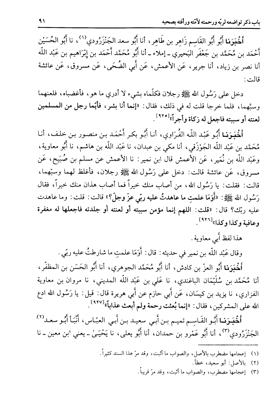 (1) اعجامها مضطرب بالاصل والصواب ما أثبت وقد مر هذا السند كثيرا