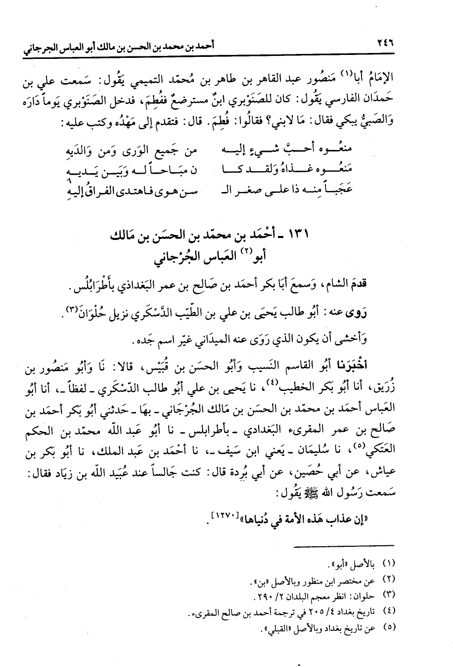 (4) تاريخ بغداد 4 / 205 في ترجمة أحمد بن صالح المقرئ