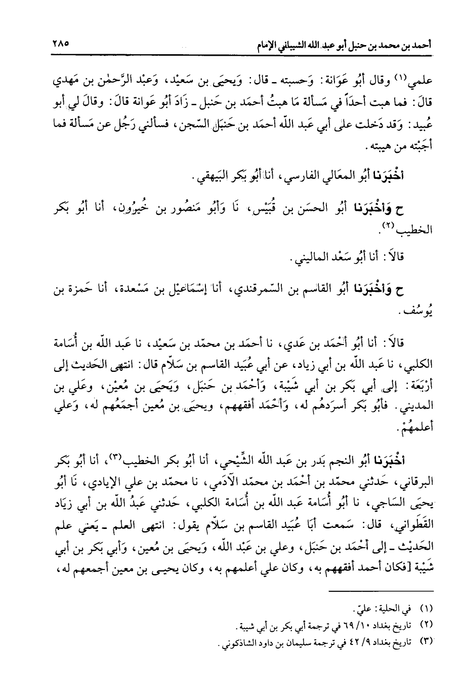 (3) تاريخ بغداد 9 / 42 في ترجمة سليمان بن داود الشاذكوني