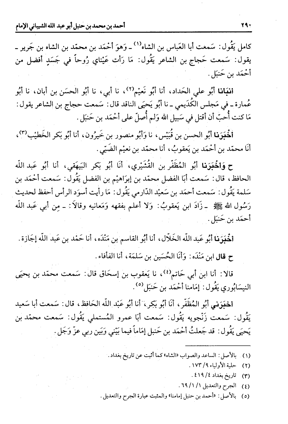 (5) بالاصل: " احمد بن حنبل إمامنا " والمثبت عبارة الجرح والتعديل