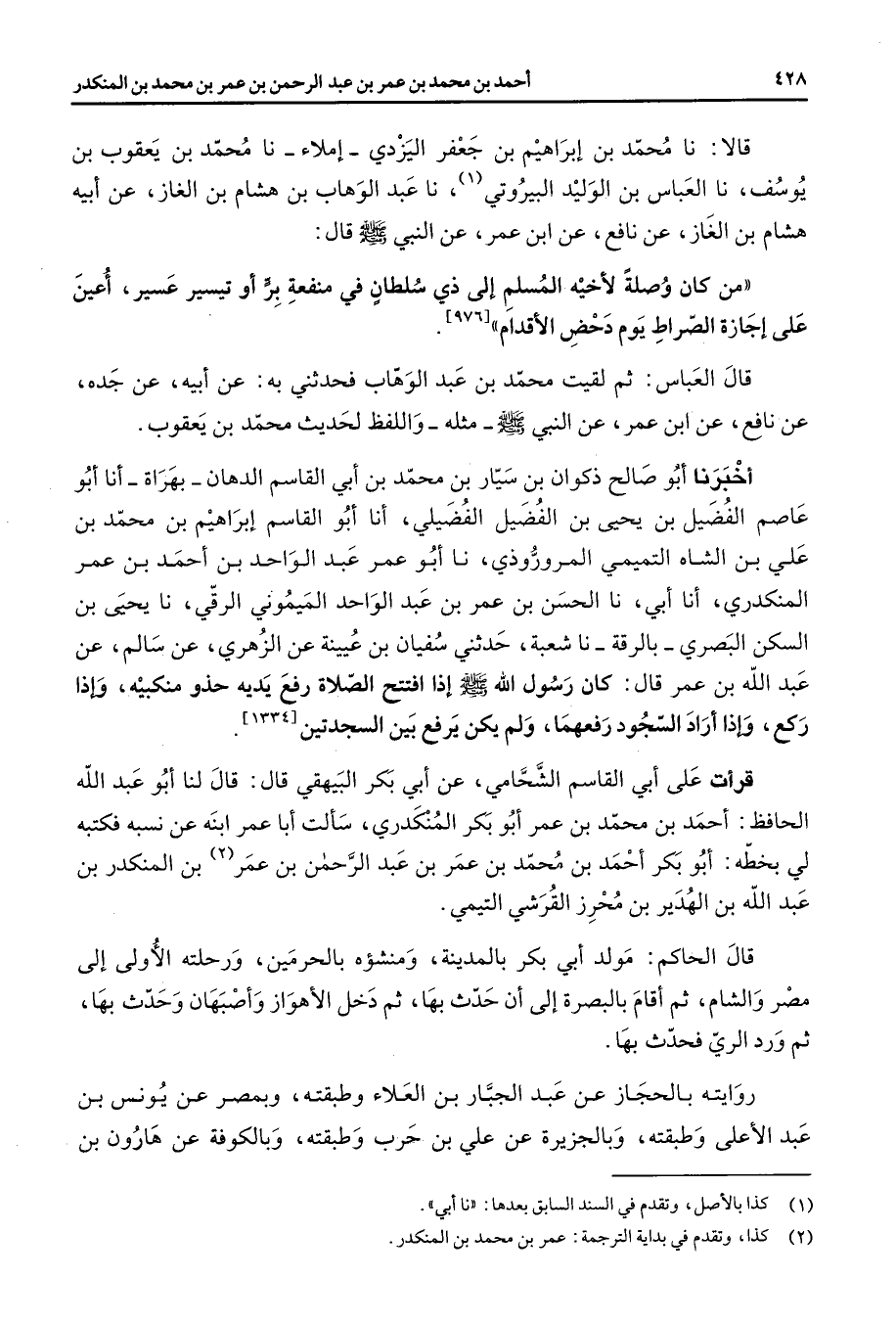 (1) كذا بالاصل وتقدم في السند السابق بعدها: " نا أبي " (2) كذا وتقدم في بداية الترجمة: عمر بن محمد بن المنكدر