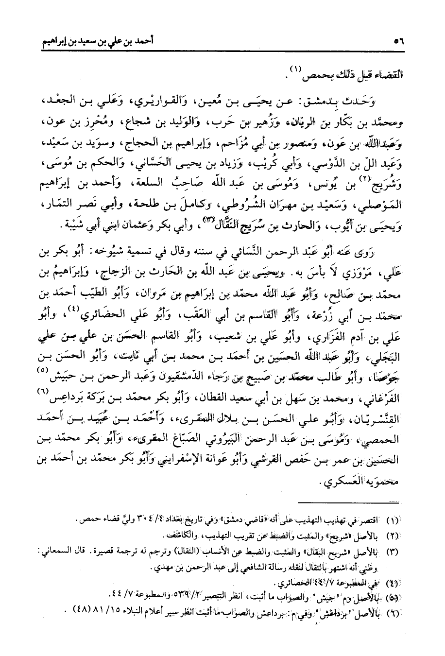 (1) اقتصر في تهذيب التهذيب على أنه " قاضي دمشق " وفي تاريخ بغداد 4 / 304 ولي قضاء حمص