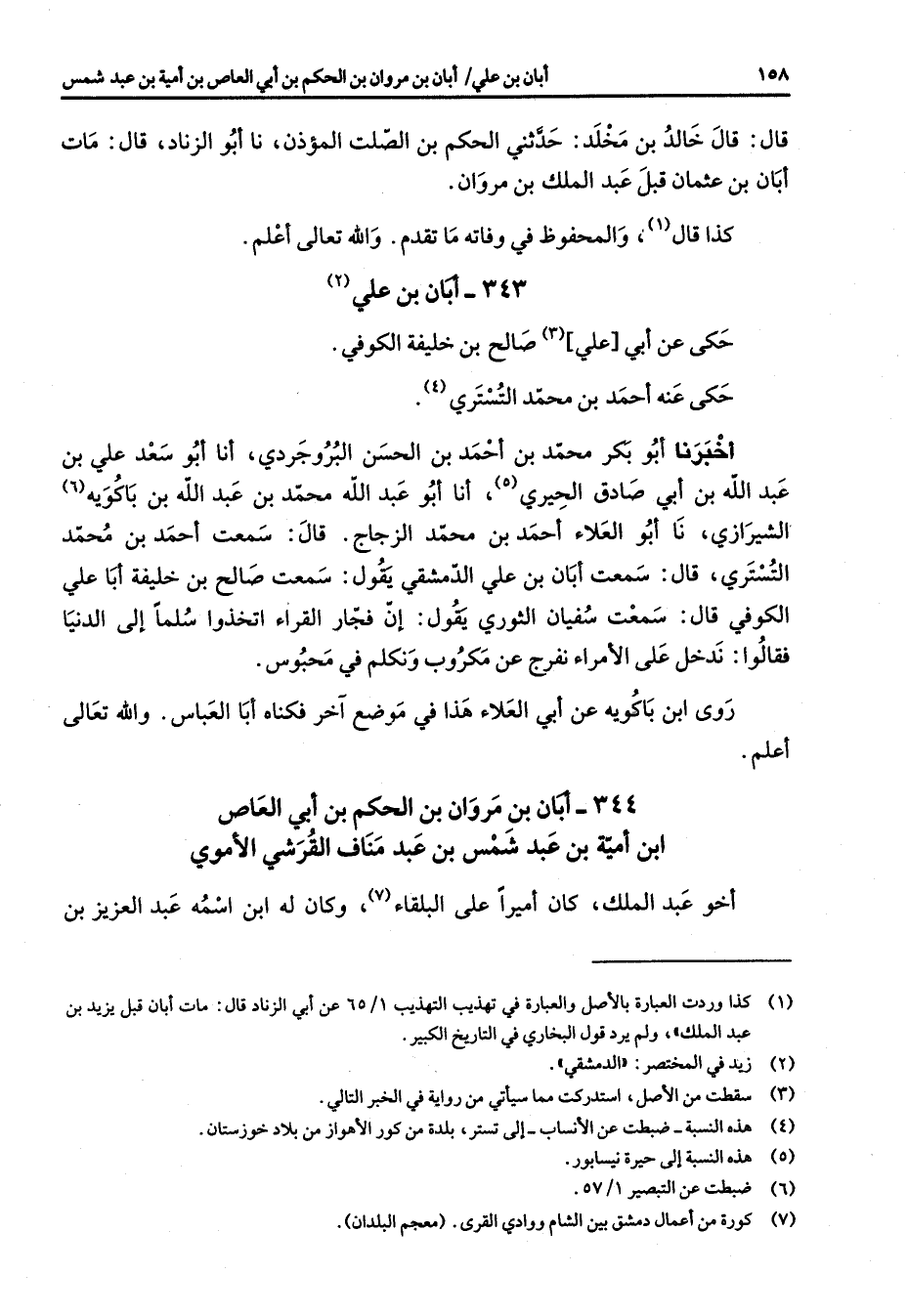 344 - أبان بن مروان بن الحكم بن أبي العاص ابن أميه بن عبد شمس بن عبد مناف القرشي الأموي أخو عبد الملك كان أميرا على البلقاء (7) وكان له ابن اسمه عبد العزيز بن