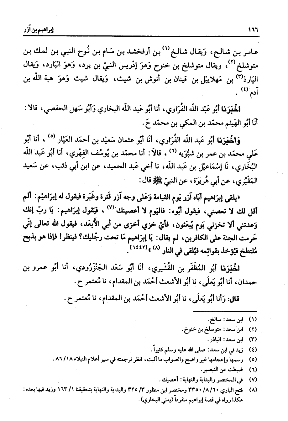 (8) فتح الباري 60 / 8 / 3350 ومختصر ابن منظور 3 / 325 والبداية والنهاية بتحقيقنا 1 / 163 وزيد فيها بعده: هكذا رواه في قصة إبراهيم منفردا (يعني البخاري)