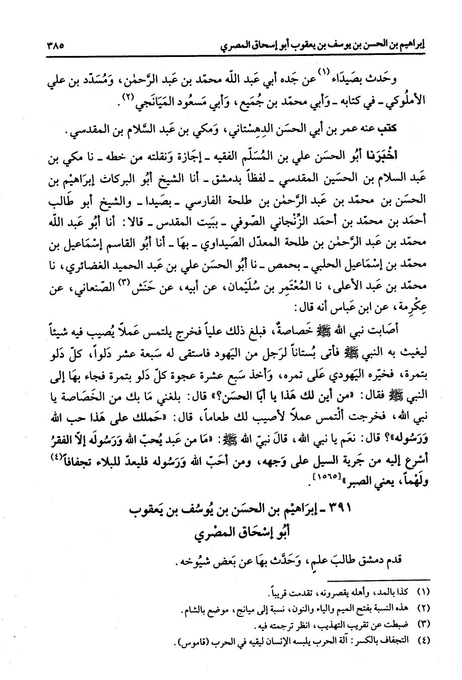 391 - إبراهيم بن الحسن بن يوسف بن يعقوب أبو إسحاق المصري قدم دمشق طالب علم وحدث بها عن بعض شيوخه