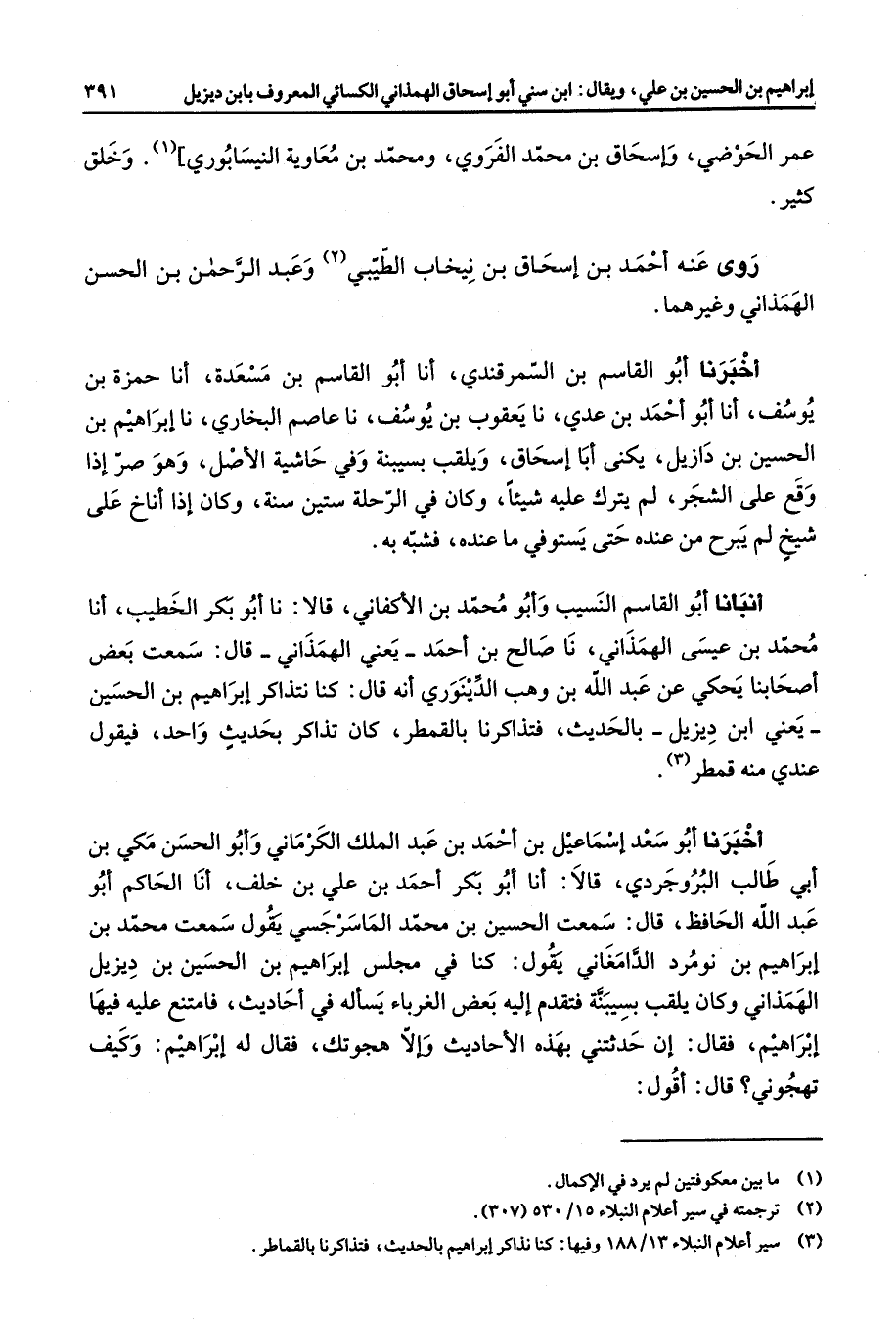 (3) سير أعلام النبلاء 13 / 188 وفيها: كنا نذاكر إبراهيم بالحديث فتذاكرنا بالقماطر