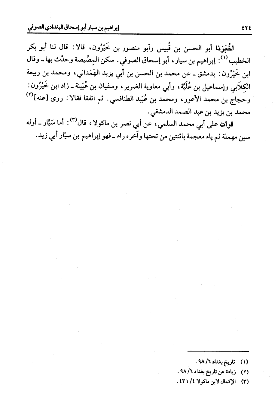 (2) زيادة عن تاريخ بغداد 6 / 98