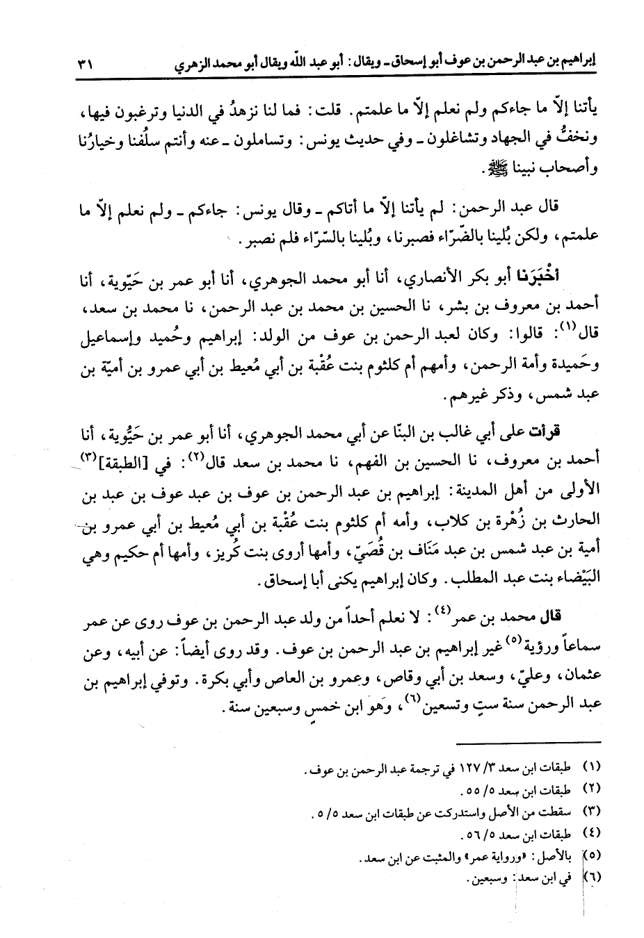 (1) طبقات ابن سعد 3 / 127 في ترجمة عبد الرحمن بن عوف