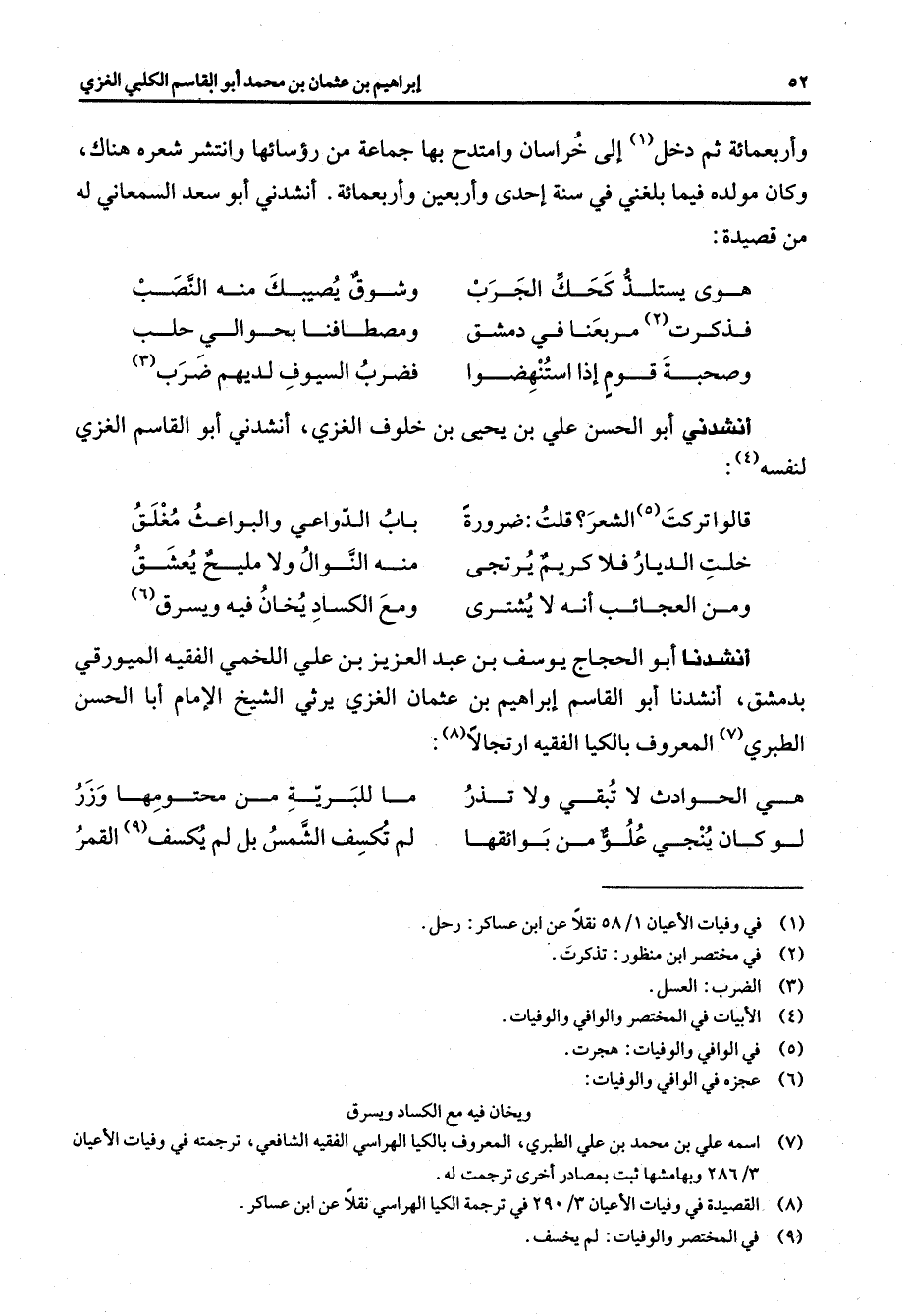 (6) عجزه في الوافي والوفيات: ويخان فيه مع الكساد ويسرق (7) اسمه علي بن محمد بن علي الطبري المعروف بالكيا الهراسي الفقيه الشافعي ترجمته في وفيات الاعيان