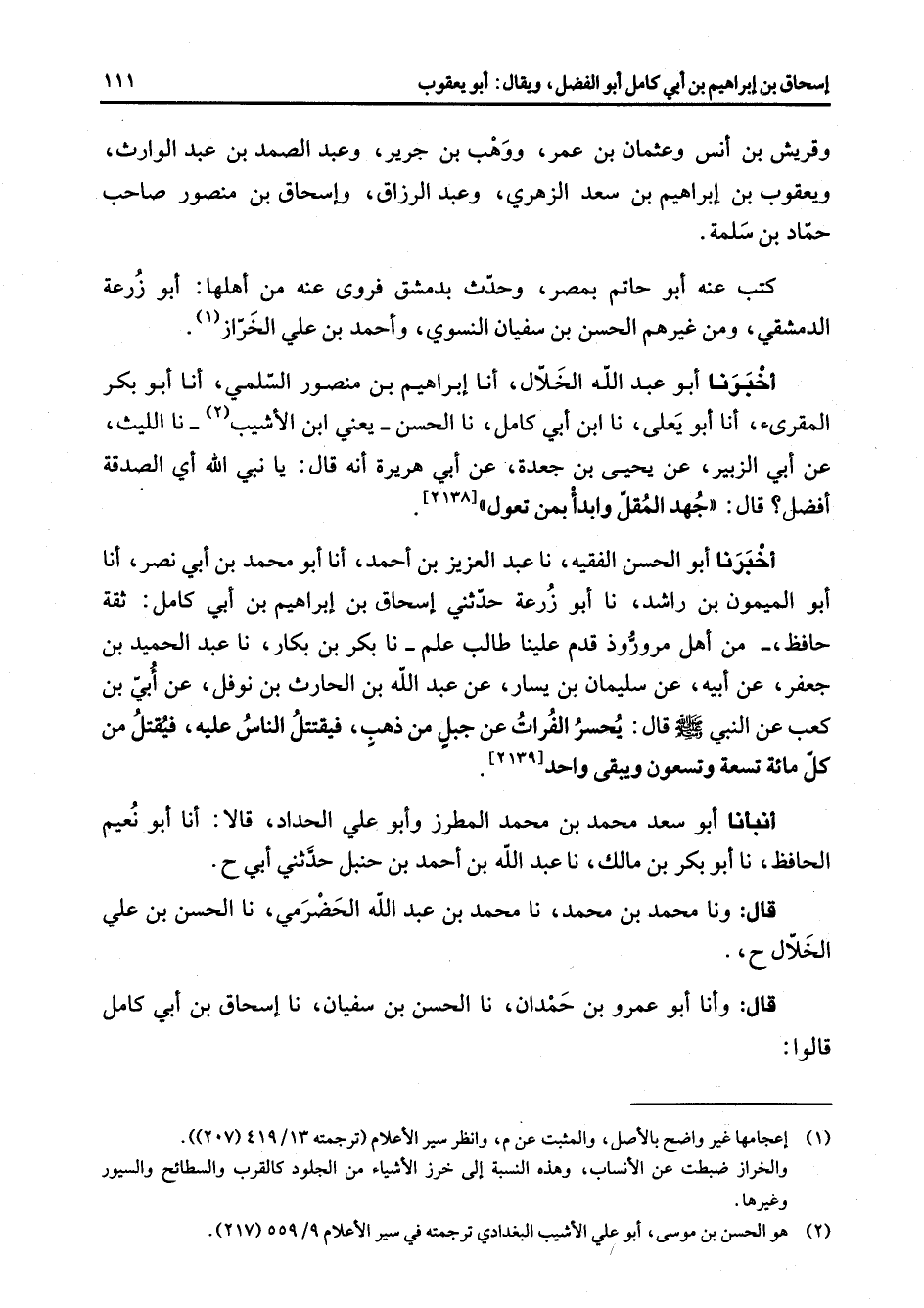 (2) هو الحسن بن موسى أبو علي الاشيب البغدادي ترجمته في سير الاعلام 9 / 559 (217)