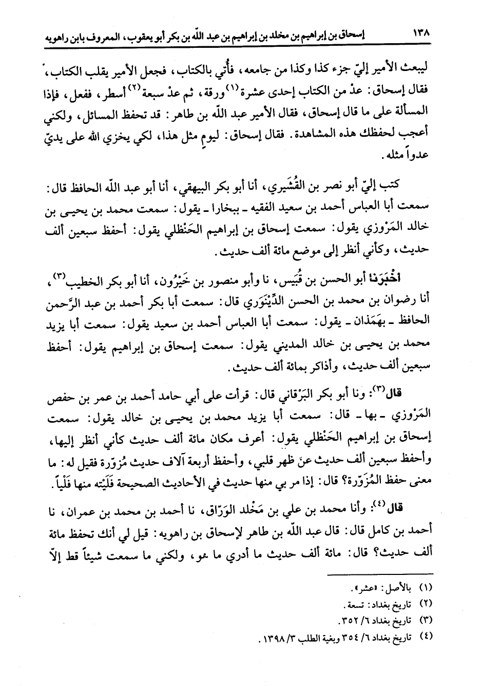 (4) تاريخ بغداد 6 / 354 وبغية الطلب 3 / 1398
