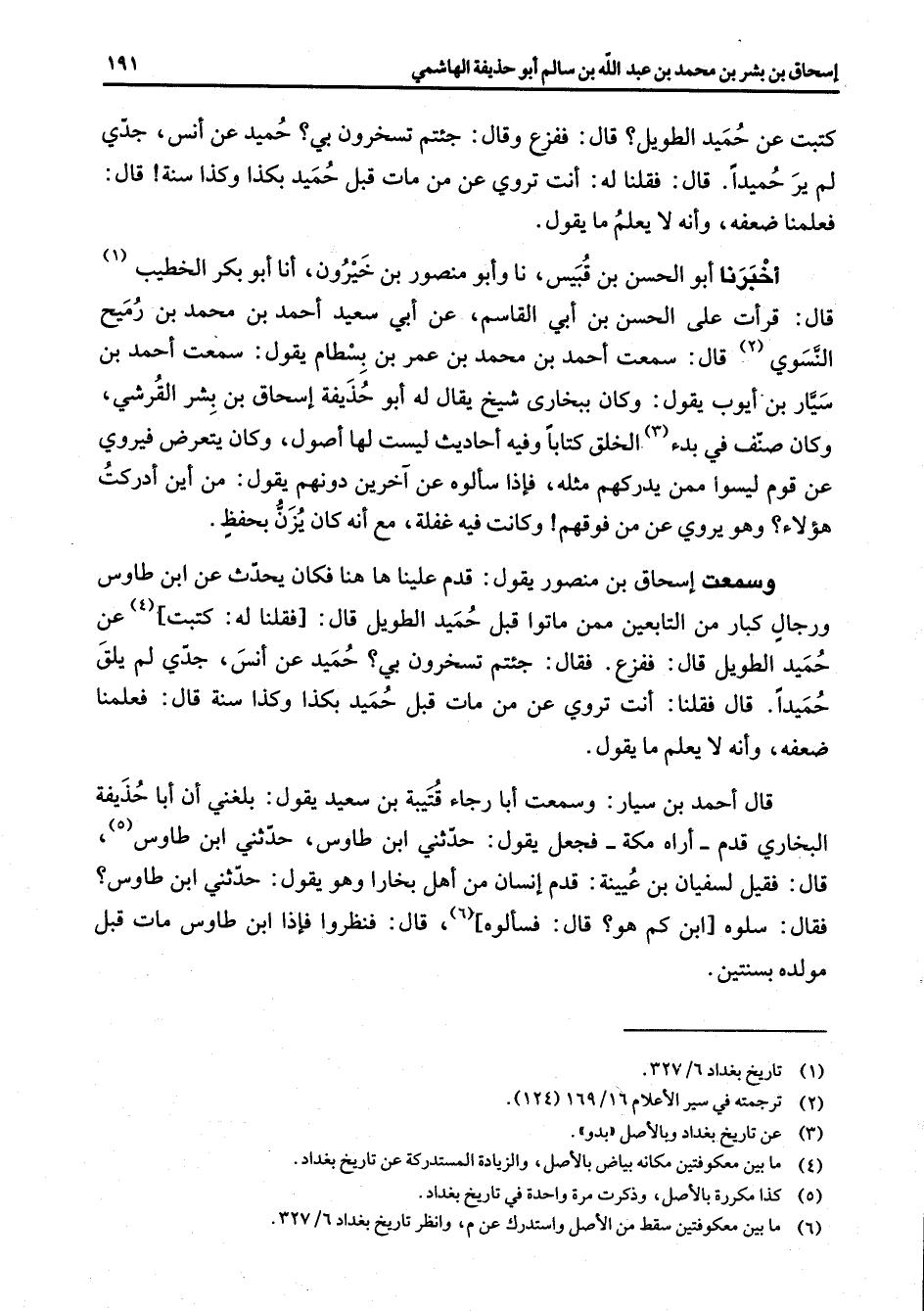 (1) تاريخ بغداد 6 / 327