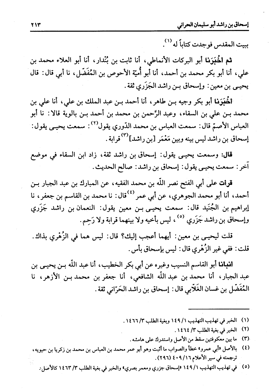(5) في تهذيب 1 / 149 " إسحاق جزري ومعمر بصري " والخبر في بغية الطلب 3 / 1463 كالاصل