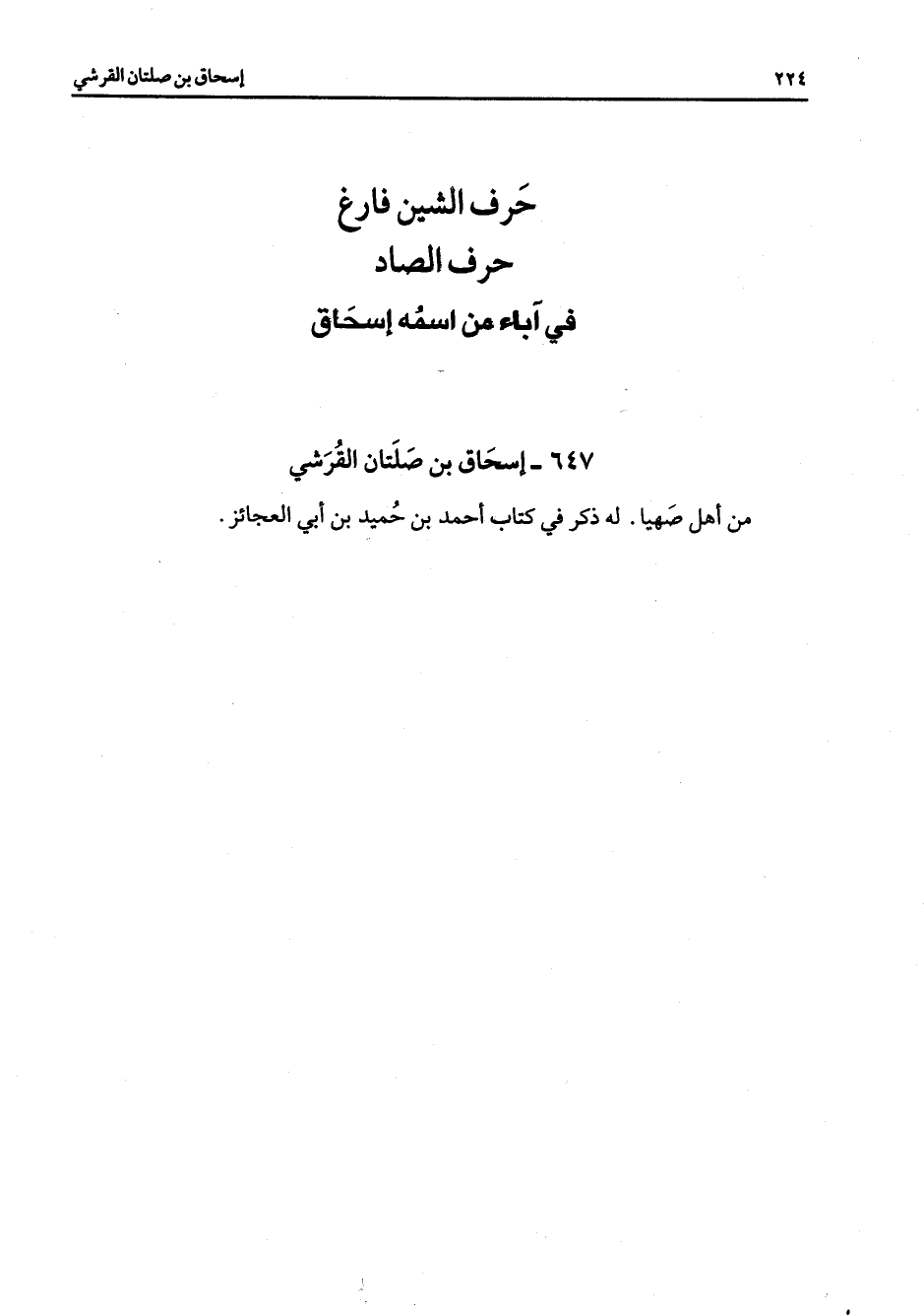 647 - إسحاق بن صلتان القرشى من أهل صهيا له ذكر في كتاب أحمد بن حميد بن أبي العجائز