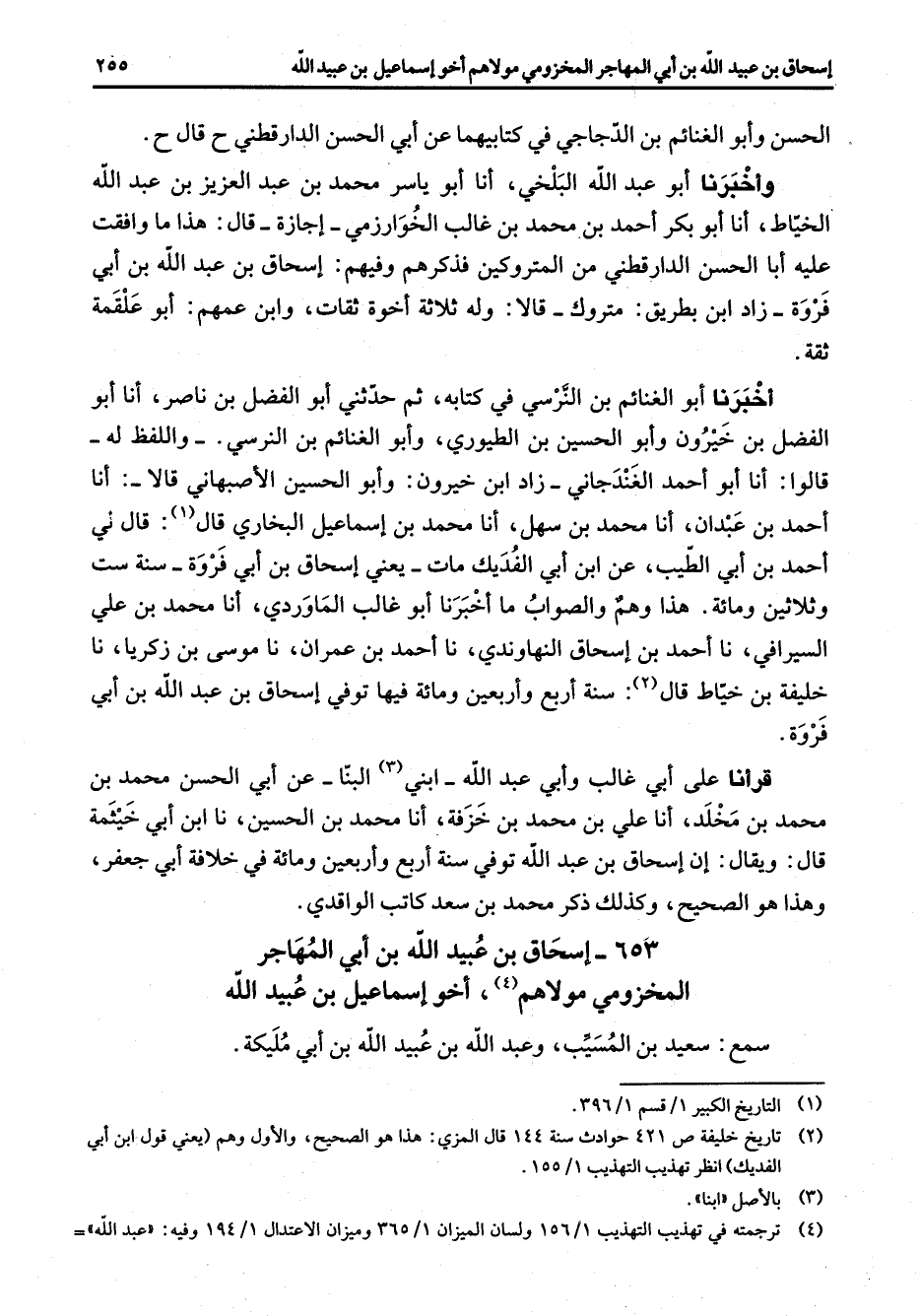 653 - إسحاق بن عبيد الله بن أبي المهاجر المخزومي مولاهم (4) أخو إسماعيل بن عبيد الله سمع سعيد بن المسيب وعبد الله بن عبيد الله بن أبي مليكة