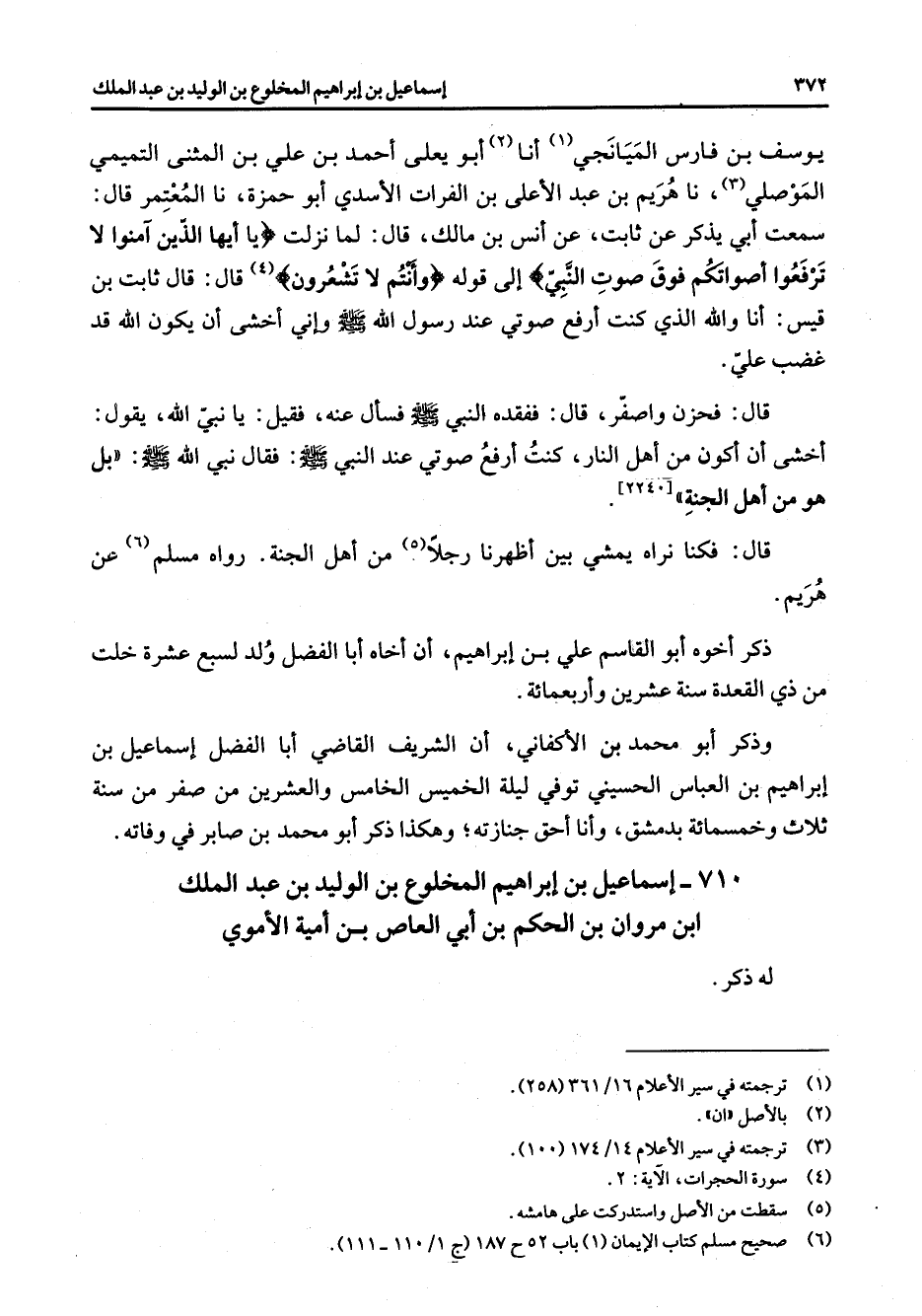 710 - إسماعيل بن إبراهيم المخلوع بن الوليد بن عبد الملك ابن مروان بن الحكم بن أبي العاص بن أمية الأموي له ذكر