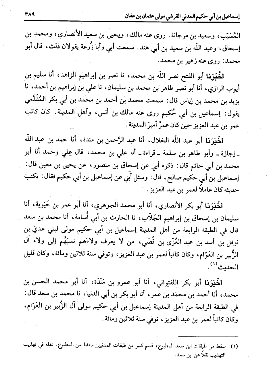 (1) سقط من طبقات ابن سعد المطبوع قسم كبير من طبقات المدنيين ساقط من المطبوع