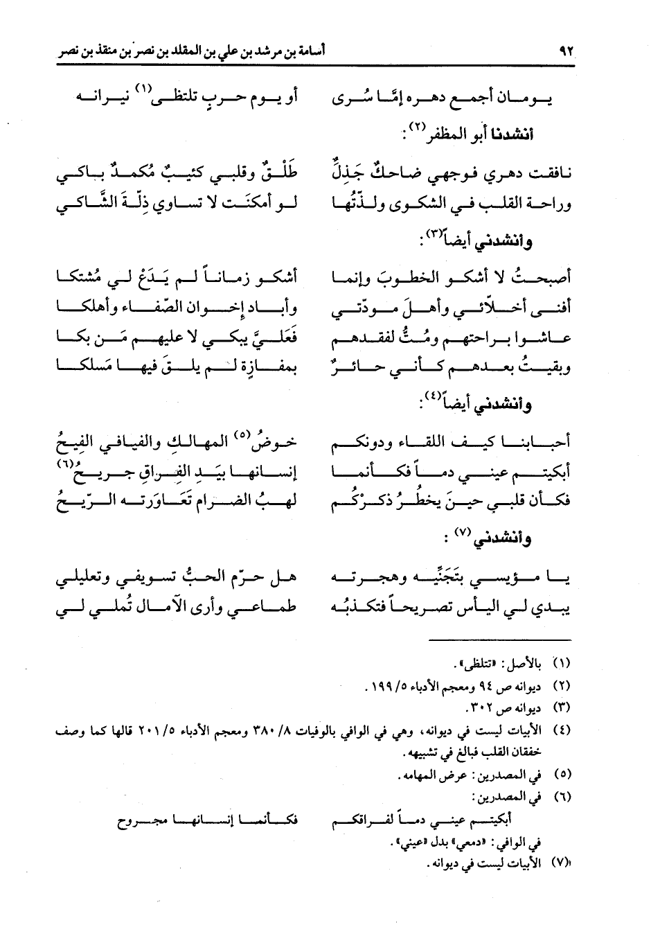 (2) ديوانه ص 94 ومعجم الادباء 5 / 199