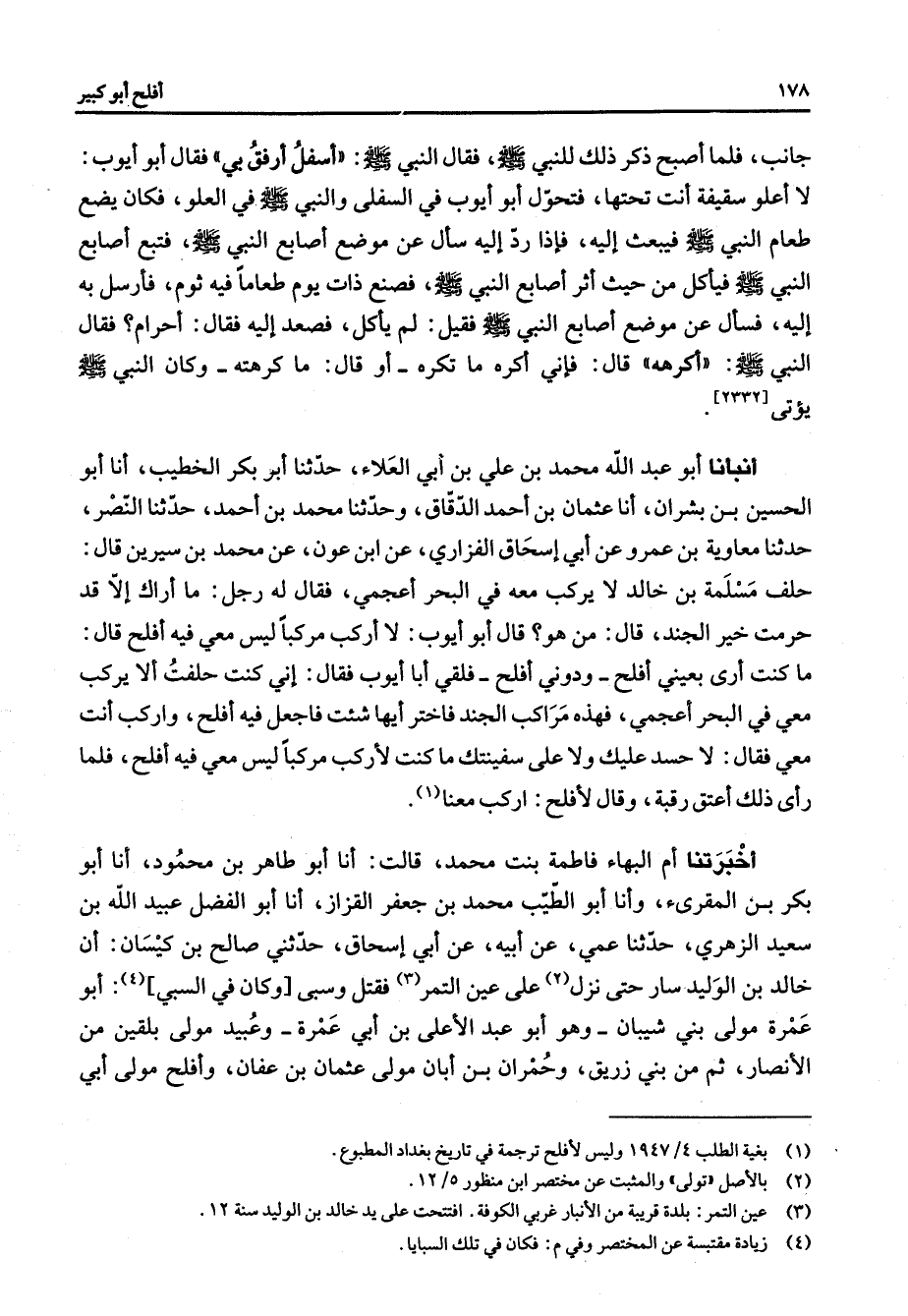 (1) بغية الطلب 4 / 1947 وليس لأفلح ترجمة في تاريخ بغداد المطبوع