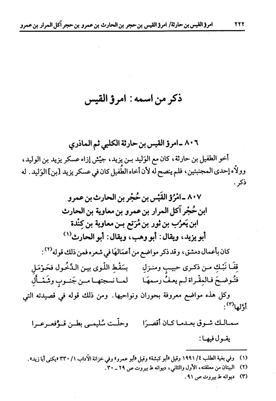 (2) البيتان من معلقته الأول والثاني ديوانه ط بيروت ص 29 - 30