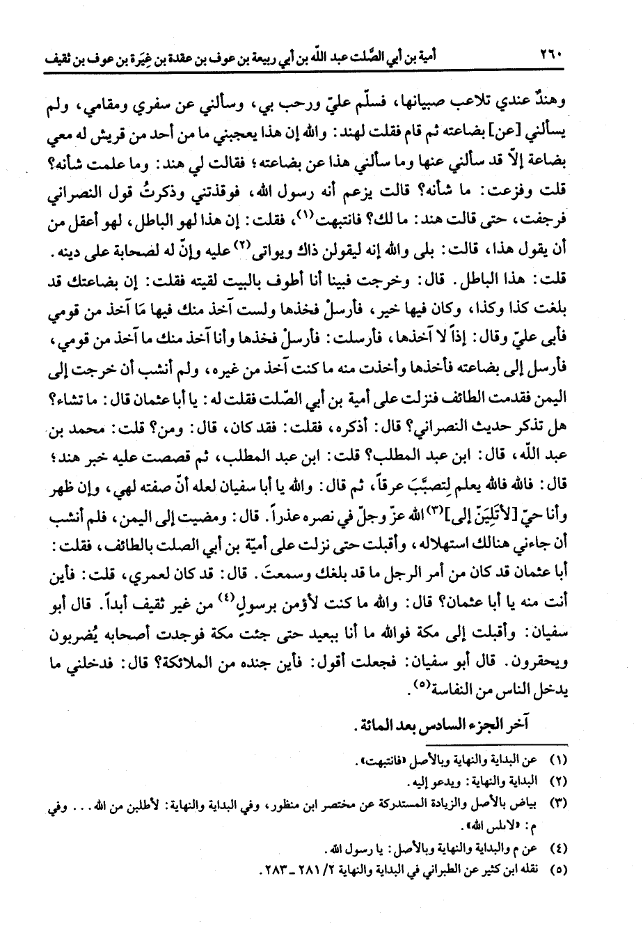 (5) نقله ابن كثير عن الطبراني في البداية والنهاية 2 / 218 - 283